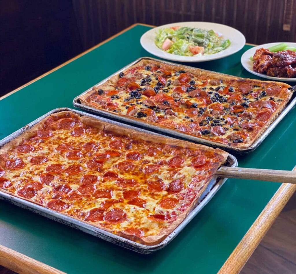 Todos hemos oído hablar de la pizza estilo Nueva York y Chicago, pero aquí en Maryland tenemos nuestro propio estilo. Como comentamos en nuestro podcast inaugural en 2014, gracias a nuestra propia… Señor MoCoEl entusiasmo de los fans por este tipo de pizza, la pizza estilo Maryland, se caracteriza por su forma rectangular, corteza de galleta, salsa de tomate dulce y queso provolone ahumado.