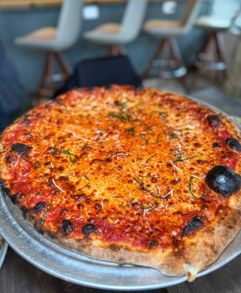No Regrets Pizza se ha convertido rápidamente en un favorito local gracias a su menú único que se centra en dos estilos distintos de pizza: la clásica neoyorquina y la auténtica romana. Las pizzas romanas son conocidas por su forma rectangular y su corteza ligera y crujiente, resultado de un proceso de fermentación en frío de 72 horas. El menú también incluye deliciosos sándwiches italianos y pastas caseras, además de una selección de cócteles artesanales y cervezas locales, lo que lo convierte en un restaurante informal de comida rápida que se transforma en un restaurante de servicio completo por la noche.