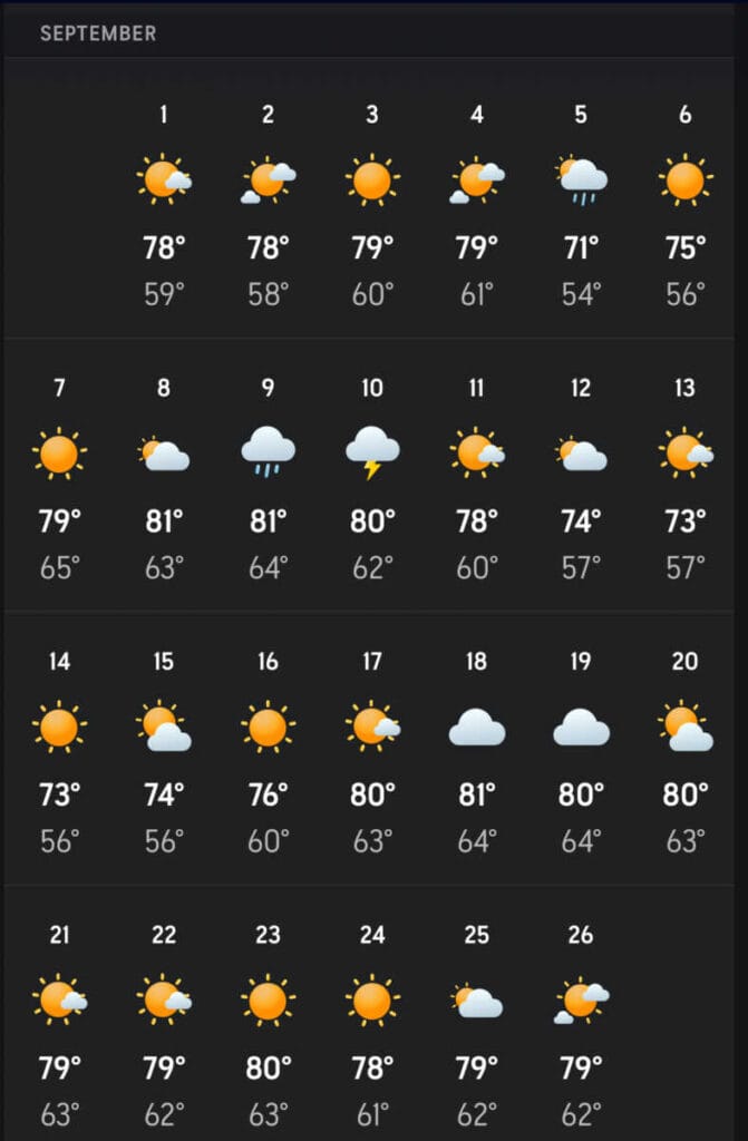 El pronóstico de 30 días de Accuweather, conocido por sus predicciones generales con precisión variable, indica que no habrá más días con temperaturas que alcancen los 32 °C hasta el 26 de septiembre. Aunque aún existe la posibilidad de uno o dos días calurosos después de esa fecha, parece que el otoño se adelantó en Maryland, con el reciente clima más fresco y sin olas de calor en el horizonte.