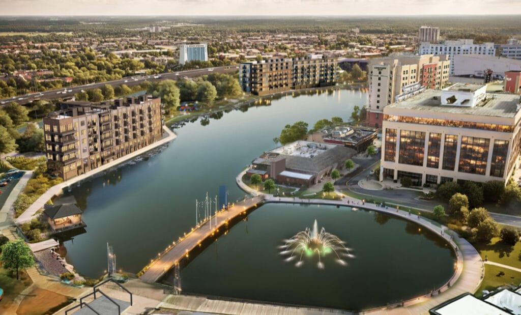Según la descripción del Plan de Desarrollo Sostenible (SDP), la solicitud “continuará la transformación del terreno en un lugar donde las personas puedan realmente vivir, trabajar y divertirse” al añadir usos residenciales a la propiedad. El Área C del Plano Esquemático, ubicada entre Uncle Julio’s y Marriott, albergará aproximadamente 210 viviendas multifamiliares y 12 casas adosadas apiladas en terrenos previamente sin desarrollar. Las 210 viviendas multifamiliares se construirán en dos edificios separados junto al lago Washingtonian. El área de juegos existente en la orilla este del lago también se reubicará al sur, hacia el lago, para permitir una mayor visibilidad y la construcción de mejoras de transporte.