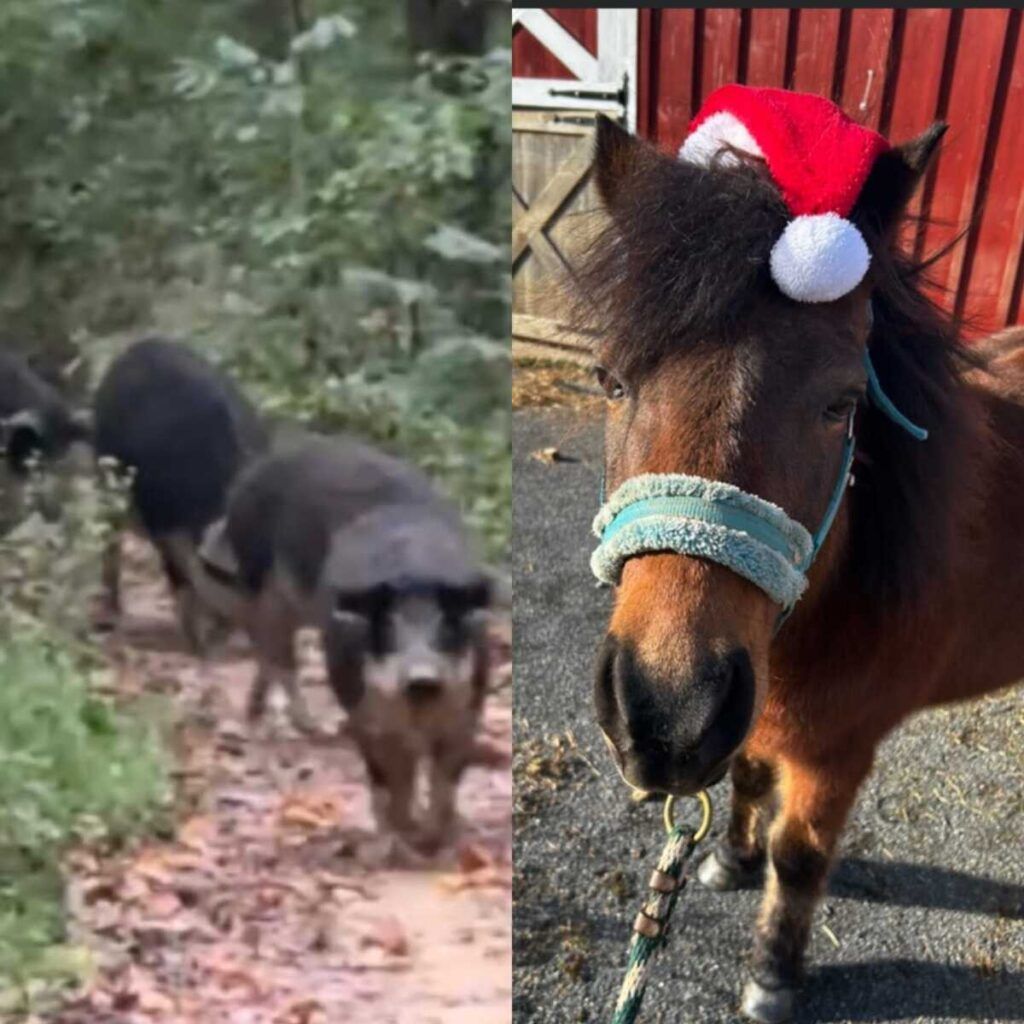 El incidente ocurrió el viernes cuando el poni, identificado como Uzi, se sobresaltó y huyó tras la colisión. Afortunadamente, Uzi resultó ileso y ya se ha reencontrado con su dueño. Se cree que el poni pudo haber sido asustado por un grupo de cerdos, o posiblemente jabalíes, que han sido avistados vagando por la zona. El ciclista de montaña local Dave Horn informó recientemente haber visto una manada de unos seis jabalíes (foto superior) mientras recorría el sendero Burnt Hill, cerca del estacionamiento del Parque Little Bennett.