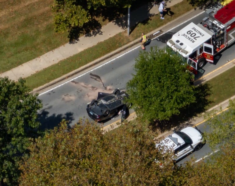Montgomery County Los Servicios de Bomberos y Rescate (MCFRS) respondieron alrededor de la 1 p. m. del domingo a una colisión en E. Village Avenue y Harmon Valley Way en Montgomery Village.