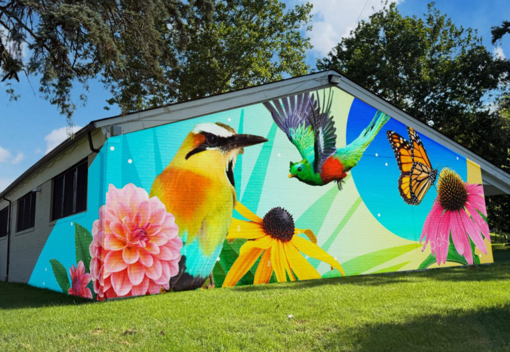 Red Swan, un estudio de murales con sede en Baltimore dirigido por los artistas Hanna Moran y Lindy Swan, creó el mural para celebrar la diversidad de Glenmont reuniendo plantas y animales de Maryland y los países latinoamericanos más representados en la comunidad: El Salvador, Guatemala y México.