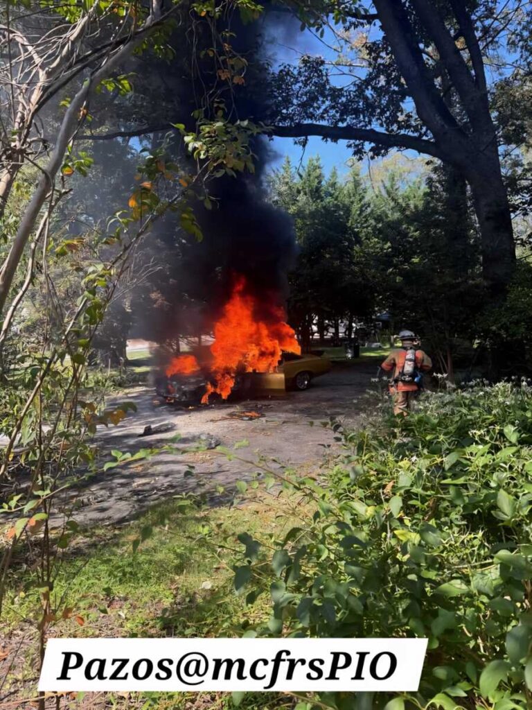Montgomery County Los Servicios de Bomberos y Rescate (MCFRS) respondieron a un incendio de vehículo cerca de una casa en la cuadra 2300 de Twin Valley Lane en Aspen Hill el jueves por la tarde.