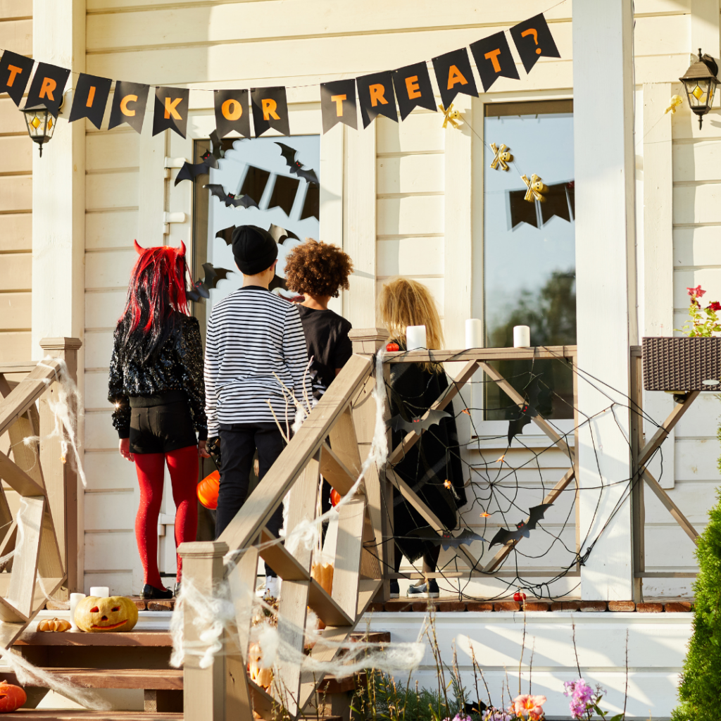 - Lleve linternas o barras luminosas y pegue tiras reflectantes en los disfraces y bolsos.