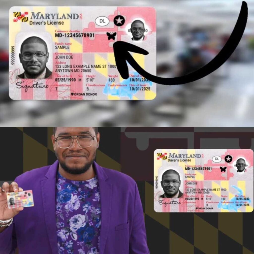 Por MDOT/IVA: Bajo Proyecto de ley 707 de la Cámara de Representantes / Proyecto de ley 618 del SenadoLos residentes de Maryland con discapacidades ocultas, como discapacidades intelectuales y del desarrollo, pueden añadir voluntariamente el símbolo de una mariposa a su licencia de conducir, tarjeta de identificación o permiso de ciclomotor. Esta designación opcional es gratuita y tiene como objetivo ayudar al personal de emergencias y a otros a reconocer a las personas con dificultades de comunicación o que necesitan adaptaciones que no son visibles a simple vista.