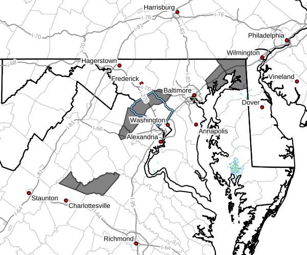 El aviso también incluye partes de los condados del noroeste de Howard, Cecil y sureste de Harford en Maryland, así como los condados de Greene, Orange, Eastern Loudoun y el noroeste de Prince William en Virginia.