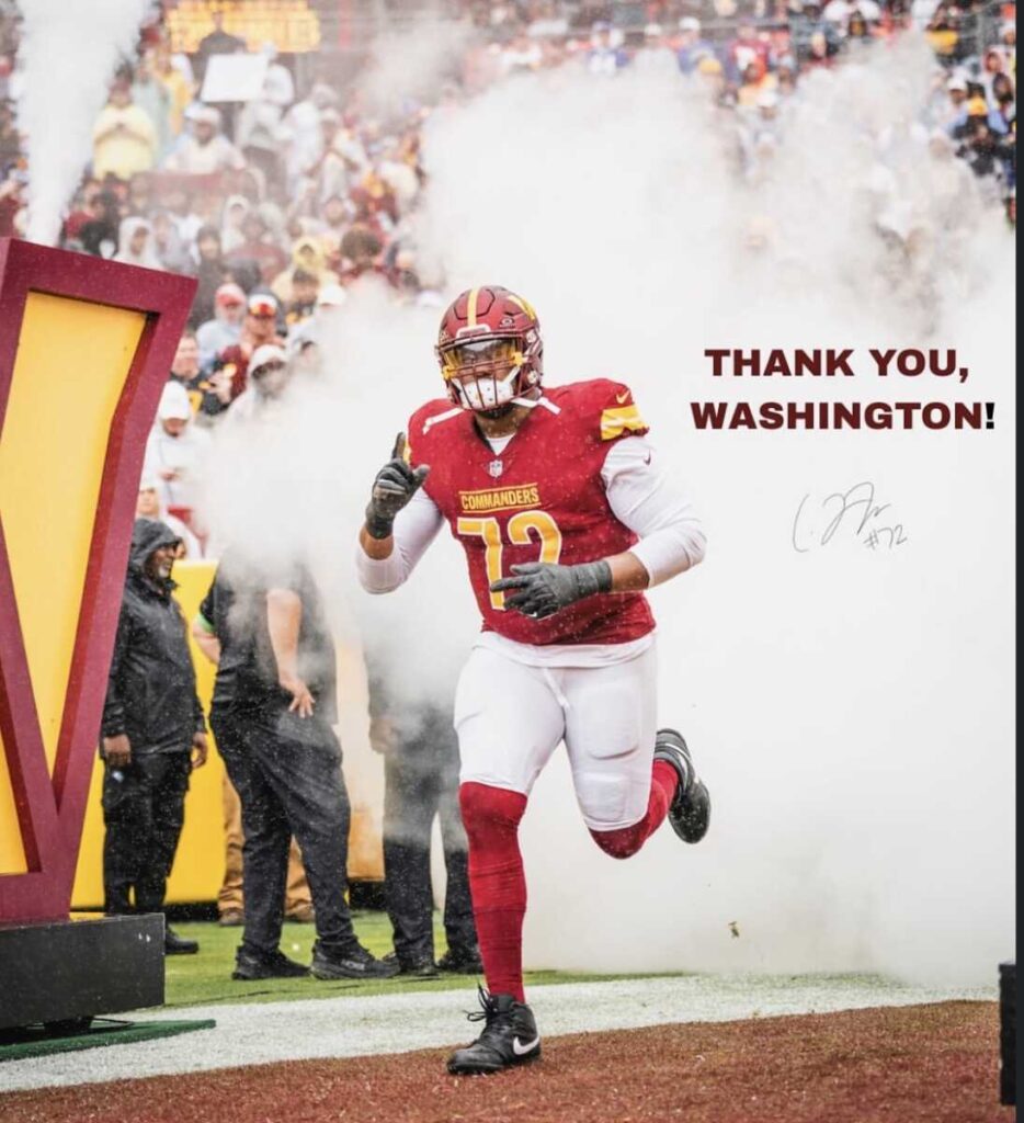 El veterano liniero ofensivo Charles Leno Jr., quien fue titular y jugó en 47 partidos para los Washington Commanders desde 2021 hasta 2023, oficialmente anunció su retiro de la Liga Nacional de Fútbol el martes 15 de octubre de 2025.
