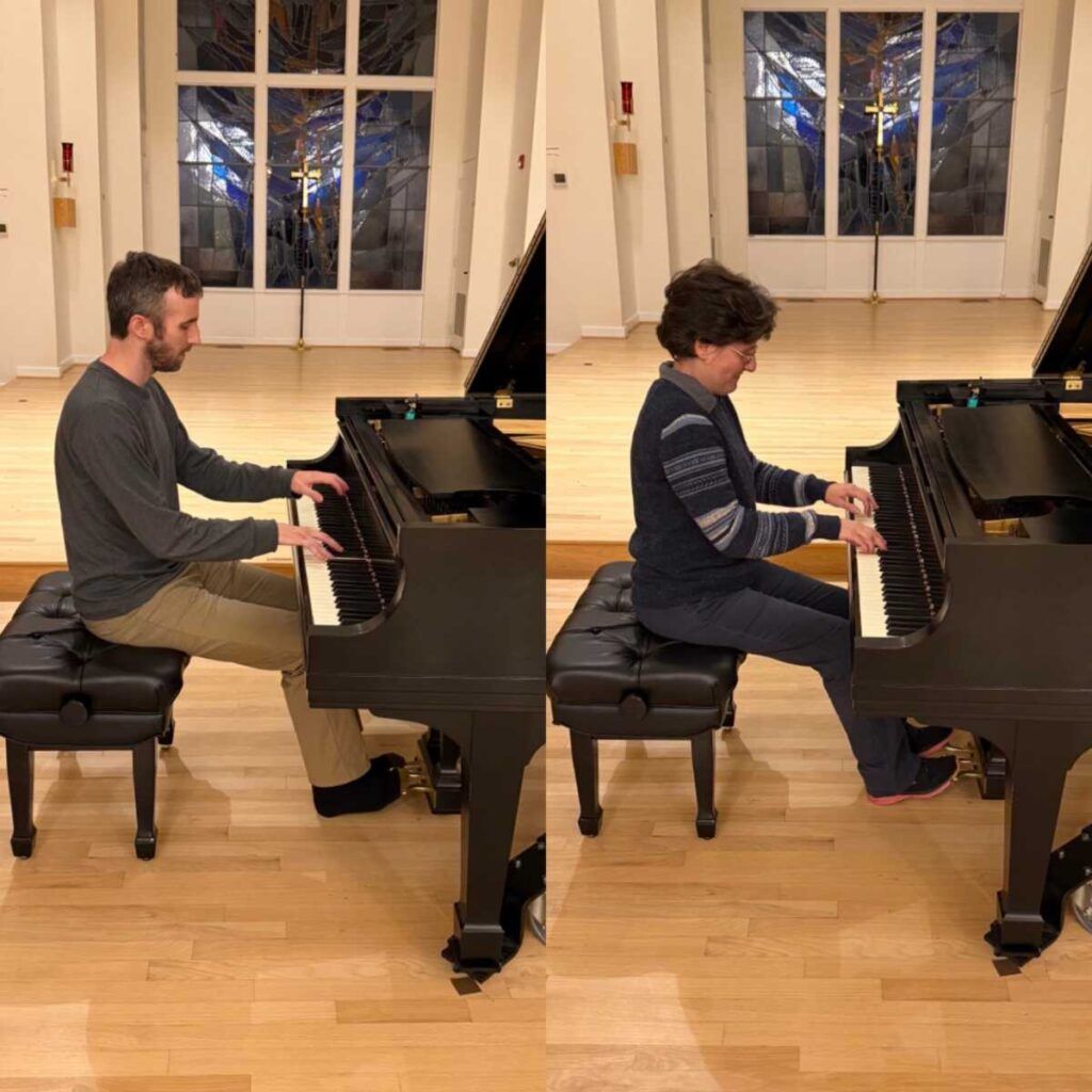 Ambos músicos imparten clases en la Escuela de Música Levine y estudiaron con la fallecida Irena Orlov. Patcheva, quien conoce a Post desde su época de estudiante, comentó que interpretar sus reinterpretaciones rítmicas transformó su comprensión del compás clásico. “Cambió por completo el carácter de esta pieza, y me hizo comprender profundamente el potencial de su idea”, comentó sobre escuchar su Preludio y Fuga en Re mayor. “Las variaciones rítmicas que Sam aporta a la música me hicieron cuestionar el compás en prácticamente toda la música clásica que interpretamos”.