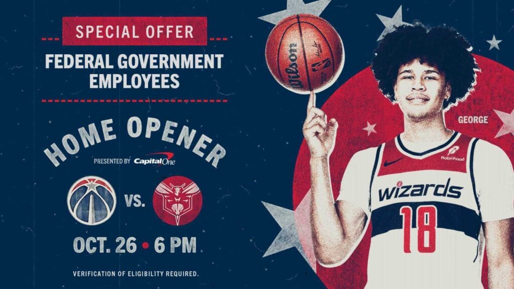 El equipo anunció que las entradas gratuitas se distribuirán por orden de llegada, lo que brindará a los empleados del gobierno y sus familias la oportunidad de disfrutar de una noche en el Capital One Arena. Una vez que se hayan reclamado las 500 entradas gratuitas iniciales, entradas adicionales Estará disponible por $10 cada uno para todos los empleados del gobierno con una identificación federal válida.