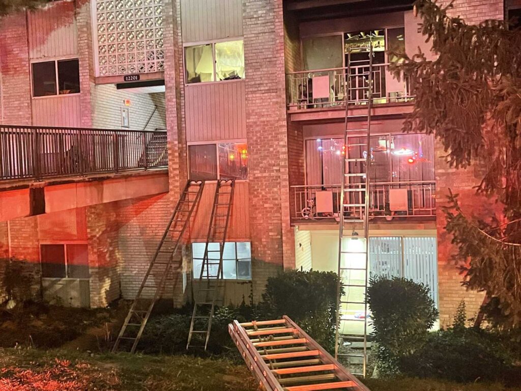 Montgomery County Los Servicios de Bomberos y Rescate (MCFRS) respondieron el martes por la noche a un incendio en los condominios Bethesda Park en Braxfield Court cerca de Parklawn Drive, donde las llamas se veían desde un apartamento del tercer piso.