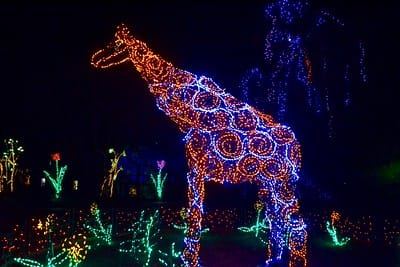 Los visitantes se encontrarán con animales, insectos y plantas luminosas, además de varias instalaciones emblemáticas, como el Monstruo del Lago Ness iluminado y flores gigantes con luz. Las exhibiciones son creadas por el personal de Montgomery Parks, quienes comienzan los preparativos casi inmediatamente después de que termina el evento del año anterior. «Cada año, empezamos a planificar el Jardín de Luces casi inmediatamente después de que se desmonta la exhibición del año anterior», dijo Jeff Patterson, supervisor de paisajismo de Brookside Gardens. «Incorporamos la tecnología más novedosa en iluminación con el objetivo de ofrecer un espectáculo que maraville a nuestros visitantes y los anime a regresar año tras año».