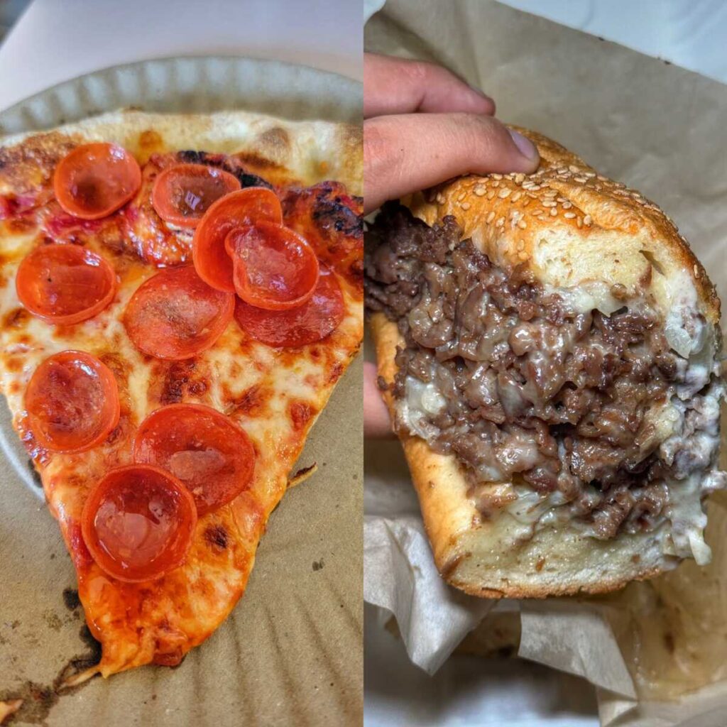 Cuando visitamos después de la reseña, probamos las rebanadas de queso y pepperoni. La pizza nos pareció más ligera y crujiente, y recibimos reseñas positivas de nuestro equipo. El cheesesteak también destacó, recibiendo excelentes críticas de todos los miembros del equipo.