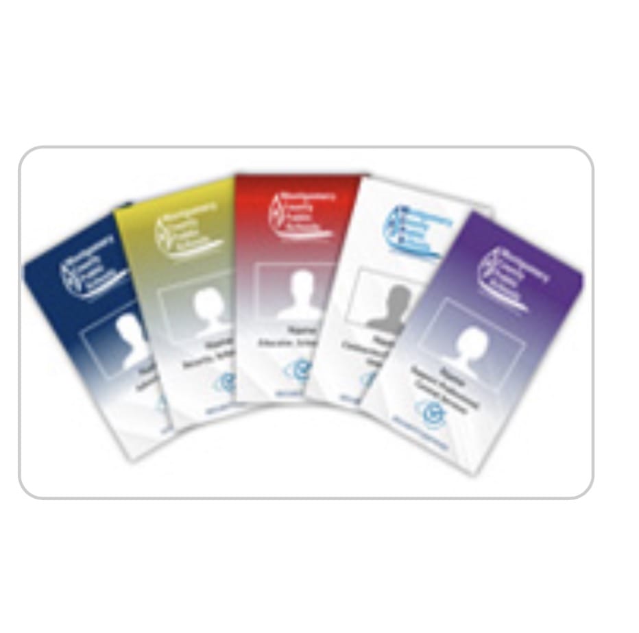 Con el nuevo sistema, las credenciales están codificadas por colores según el rol. Las credenciales azules identifican a administradores, líderes escolares y administradores de Servicios Centrales. Las credenciales rojas se asignan a los educadores. Las credenciales moradas designan a los profesionales de apoyo, mientras que las amarillas las usa el personal de seguridad. Las credenciales blancas se usan para contratistas y voluntarios.