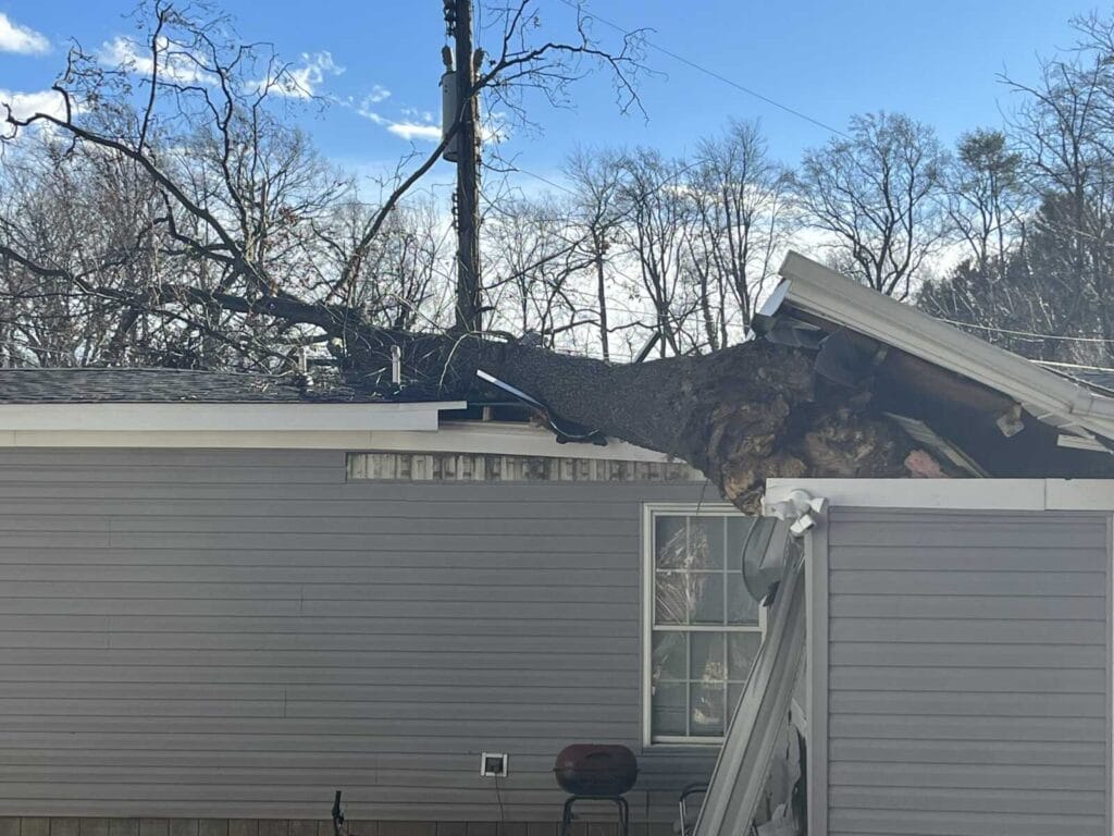 Un árbol caído dañó una casa rodante en Germantown el lunes por la tarde mientras fuertes vientos pasaban por Montgomery County.