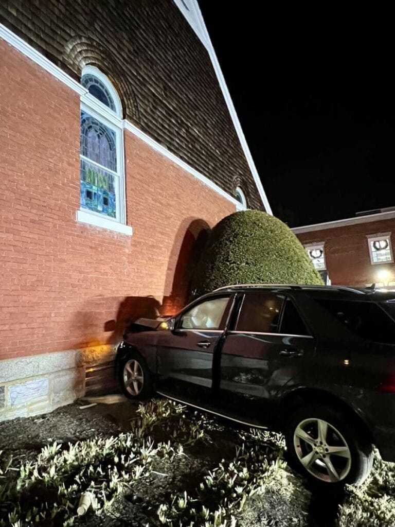 Montgomery County Los Servicios de Bomberos y Rescate (MCFRS) respondieron a la Iglesia Metodista Grace en 119 N. Frederick Avenue en Gaithersburg después de que un vehículo chocara contra el costado del edificio.