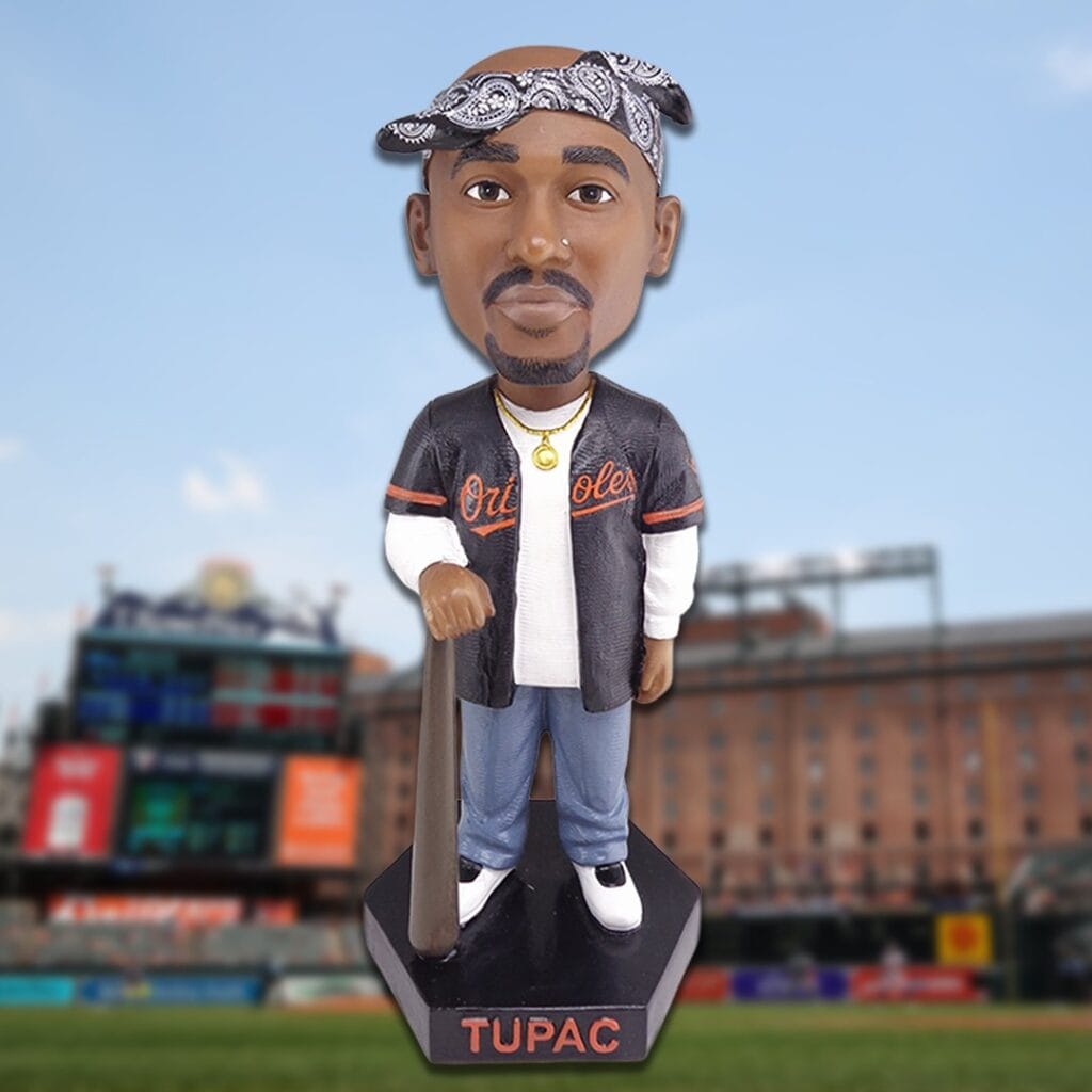 El equipo anunció que los aficionados que asistan al partido en casa de los Orioles contra los Atléticos de Oakland el viernes 8 de mayo recibirán un cabezón de Tupac como parte del nuevo programa promocional del club. El obsequio forma parte de una amplia gama de noches temáticas, paquetes especiales de entradas y experiencias para los aficionados que saldrán a la venta al público general el miércoles 14 de enero.