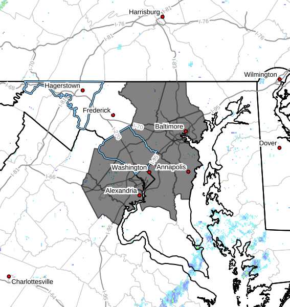 El aviso cubre el Distrito de Columbia, el condado de Carroll, el condado de Baltimore, el condado de Prince George, el condado de Anne Arundel, Montgomery County, el condado de Howard, el condado de Fairfax, Arlington, Alexandria, Falls Church, el condado de Loudoun y el condado de Prince William.