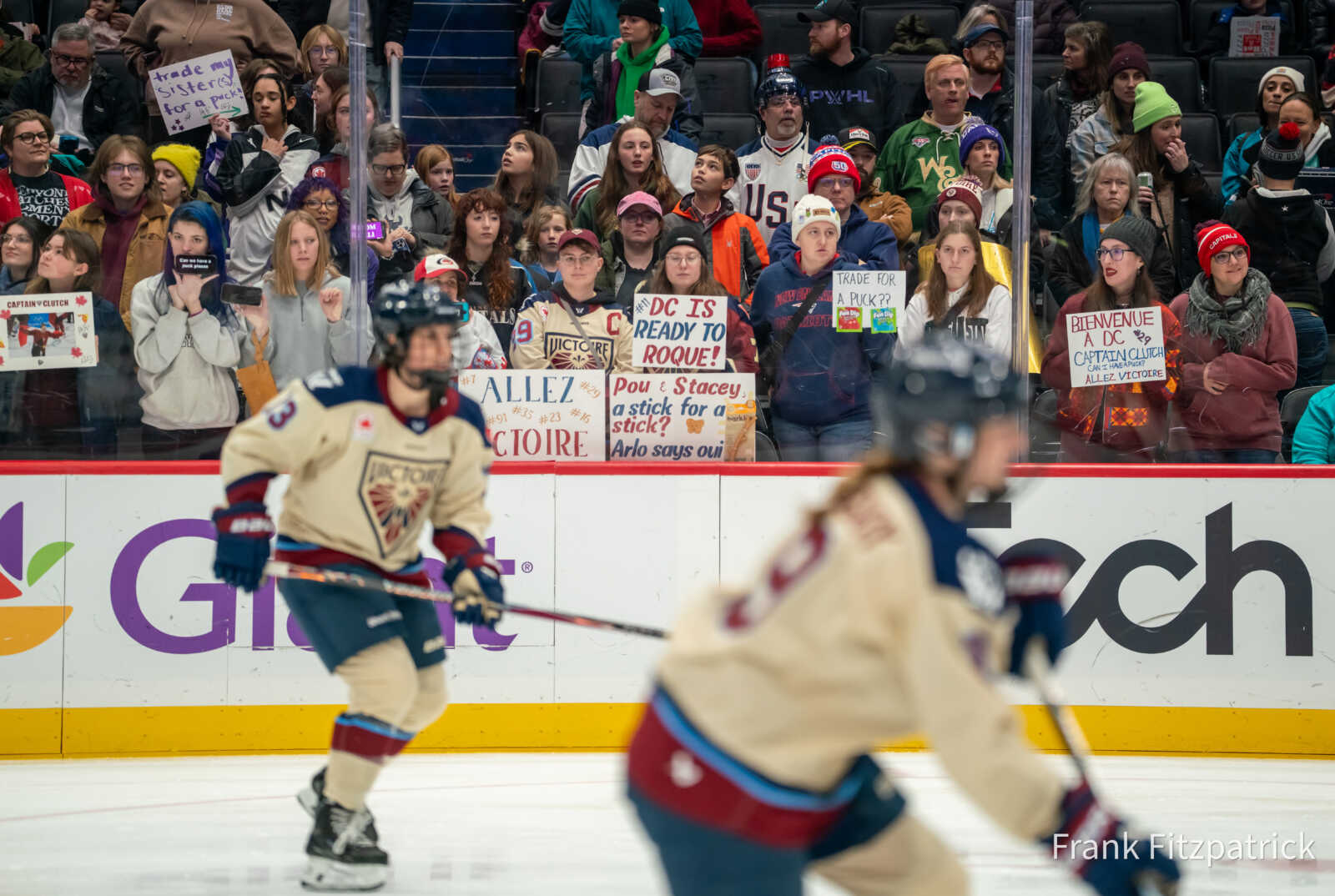 Una multitud anunciada de 17,228 personas llenó el Capital One Arena, la mayor asistencia a un partido de hockey femenino profesional en la ciudad. Si bien Nueva York era el equipo geográficamente más cercano, gran parte del público parecía apoyar a Montreal. Entre ellos se encontraban Sam y Calvin, estudiantes de MCPS, quienes esperaban la victoria de Victoire. Durante toda la noche, los cánticos de “Queremos un equipo” resonaron en el estadio, lo que resaltó el creciente interés local en traer una franquicia de la PWHL a la capital del país.