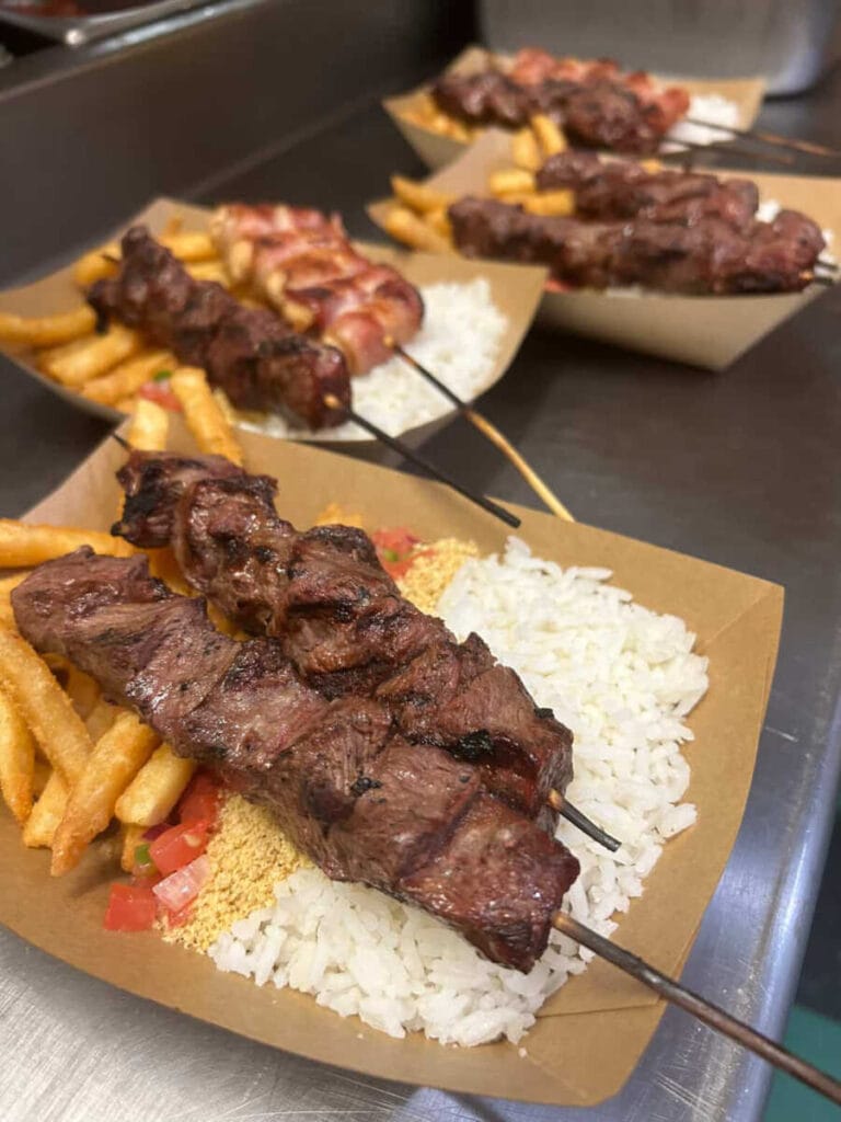 El restaurante está ubicado dentro de Tiger Beer, Wine, and Deli y se especializa en auténtica barbacoa brasileña, con brochetas de pollo, bistec y carne de res que se sirven con arroz y papas fritas.