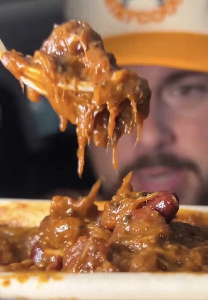 Mr. 8 That: “Las alitas fritas en sebo de res estaban cubiertas con una salsa agridulce y pegajosa que tenía un sabor delicioso, pero sentí que las alitas perdían algo de su textura crujiente con tanta salsa. Los macarrones con queso tenían un toque de Baltimore con un toque de Old Bay en su cremosa textura. El chili de falda me impresionó; el wagyu estaba increíblemente tierno y le aportaba un sabor intenso que lo hizo memorable. Las papas fritas, también fritas en sebo de res, eran increíblemente crujientes, cortadas en waffle, de las mejores papas fritas de comida rápida informal que he probado. Finalmente, el sándwich de falda de wagyu estaba al mismo nivel que el chili, con la carne grasosa aportando un sabor a carne muy intenso”.