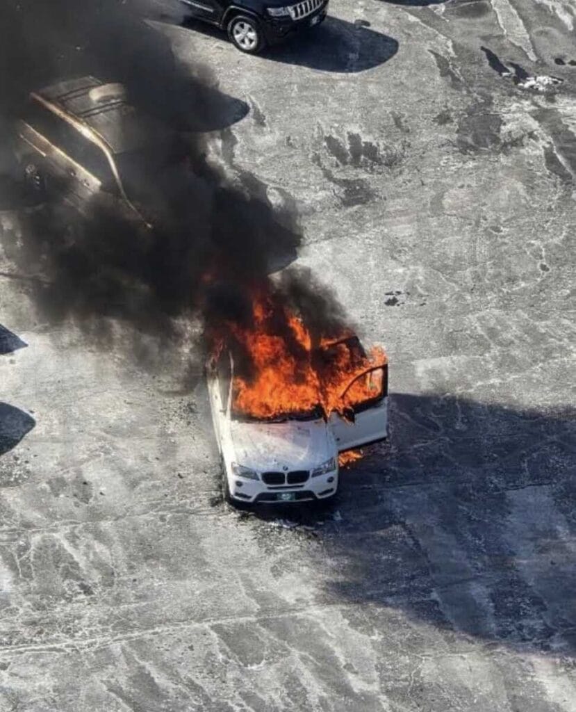 Un vehículo se incendió el jueves en un estacionamiento cerca de un complejo de condominios en el área Norte Bethesda.