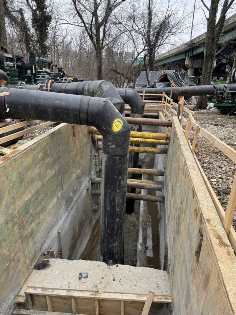 DC Water informó que las cuadrillas y contratistas están a punto de completar un sistema mejorado de bombeo de derivación que permitirá iniciar las reparaciones de emergencia en la sección dañada del interceptor Potomac. Se activó un nuevo pozo de acceso aguas arriba con bombas adicionales de alta capacidad antes de las recientes lluvias y el deshielo, y se espera que entren en funcionamiento más bombas para proporcionar mayor capacidad y redundancia. Una vez que se instale una compuerta de acero para aislar la tubería dañada y se retire la presa de roca, las cuadrillas podrán evaluar completamente los daños y comenzar las reparaciones específicas. Se espera que las reparaciones de emergencia tomen de cuatro a seis semanas, seguidas de un proyecto de rehabilitación a largo plazo que durará aproximadamente de nueve a diez meses, que incluirá revestimiento deslizante y revestimiento de geopolímero para reforzar más de 2700 pies de tubería. DC Water indicó que se están desarrollando planes de restauración ambiental con los reguladores, y los resultados del muestreo de calidad del agua continúan publicándose en línea.
