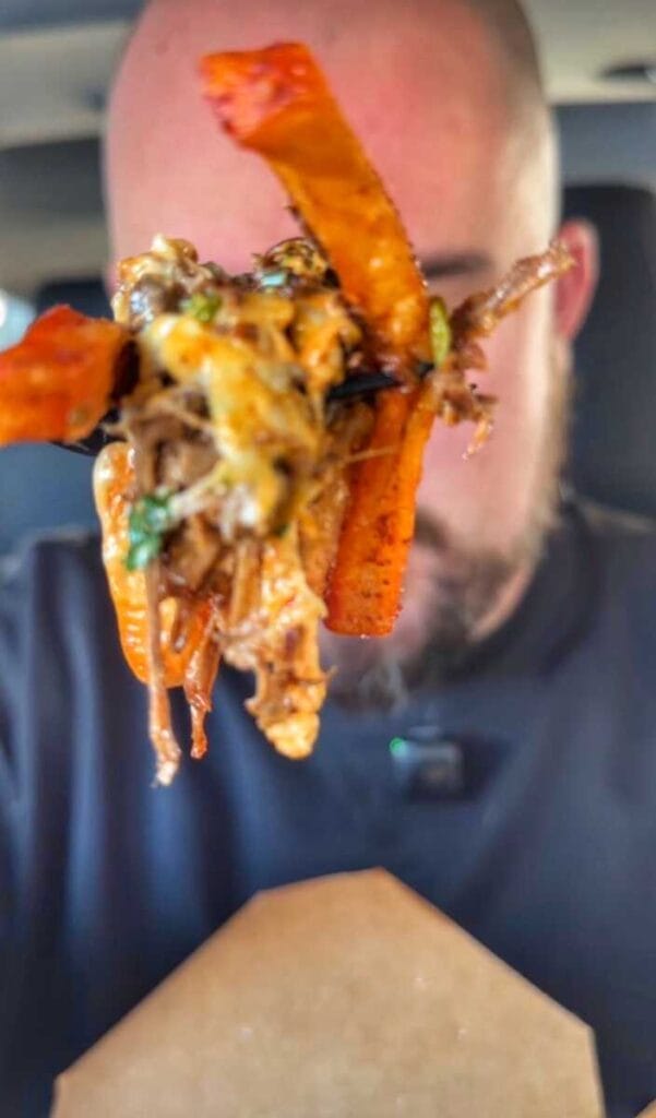 Durante su visita, el Sr. 8 That probó las Papas Fritas con Birria, los Tacos de Birria y el Burrito de Pollo Clásico. Le dio al sabor un 4.4 y al precio un 4.0, lo que le dio una puntuación final de 8.4. ¡Eso significa que DMV Taqueria 8 that! Sigue a DMV Taqueria en Instagram para que veas dónde estarán la semana que viene y consigas la mejor birria de la zona.