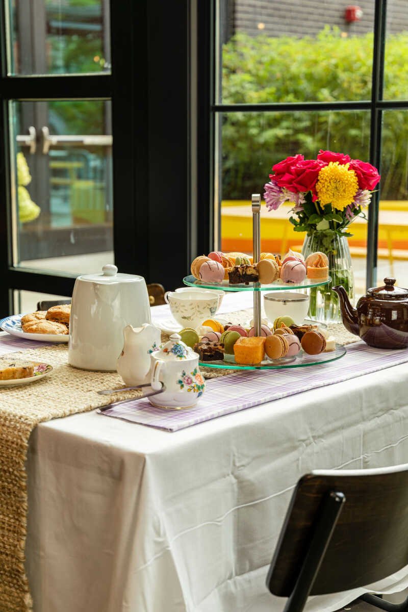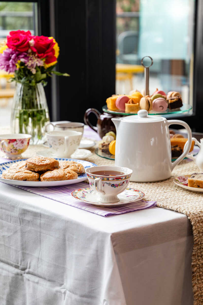Deléitese con una cuidada selección de tés premium, delicados sándwiches, scones recién horneados y pasteles exquisitos, cada uno elaborado para disfrutarlo lentamente y compartirlo generosamente. Ya sea para celebrar una ocasión especial o simplemente para alegrar su tarde, nuestro servicio de té es una invitación a hacer una pausa, saborear y disfrutar de algo exquisitamente refinado.