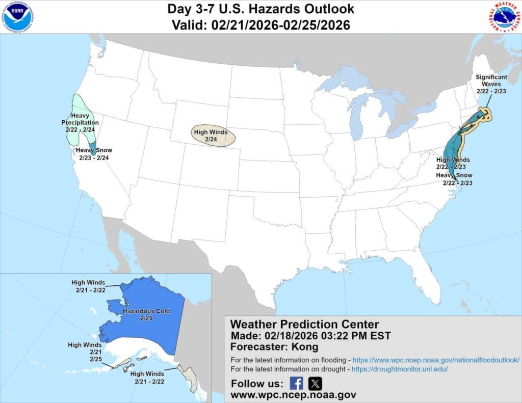 El Centro de Predicción Meteorológica del Servicio Meteorológico Nacional (WPC) publicó un pronóstico de peligros actualizado que ubica partes de Maryland justo al este de nuestra área inmediata dentro de una zona de riesgo de “Nevadas Intensas” mientras los meteorólogos continúan monitoreando una posible tormenta invernal para el domingo y el lunes.