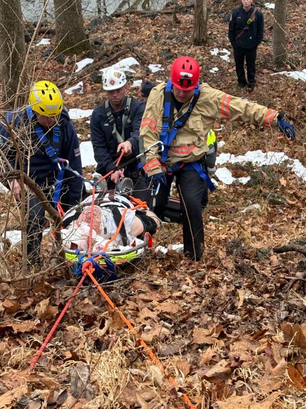 Montgomery County Los Servicios de Bomberos y Rescate (MCFRS) respondieron alrededor de las 2 p. m. del jueves al sendero Burma Road cerca de MacArthur Boulevard en el área Potomac por un excursionista herido que cayó aproximadamente 30 pies por un terraplén.