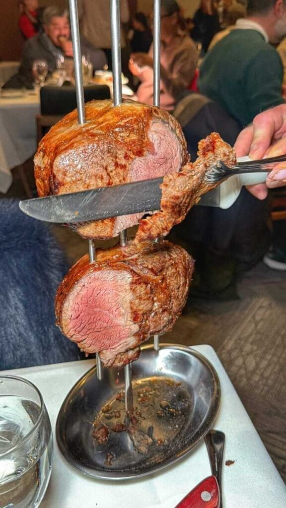 Terra Gaucha es conocida por su tradicional experiencia gastronómica de churrasco y rodizio del sur de Brasil. Los chefs gauchos recorren el comedor cortando carnes a la leña junto a la mesa, incluyendo cortes como picanha, filet mignon, chuletón y costillas de res.