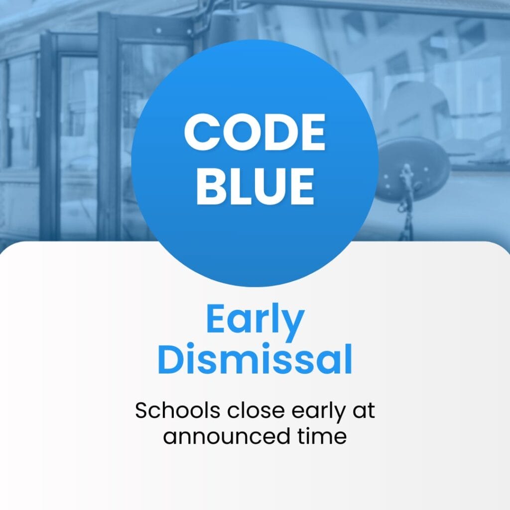 Las autoridades escolares anunciaron el domingo por la noche que el sistema escolar operará bajo un horario de alerta temprana (Código Azul) debido a la creciente preocupación del Servicio Meteorológico Nacional sobre la intensidad y el momento de las tormentas. Los meteorólogos advierten que la zona debe prepararse para tormentas eléctricas intensas, fuertes vientos, granizo y la posibilidad de tornados dañinos.