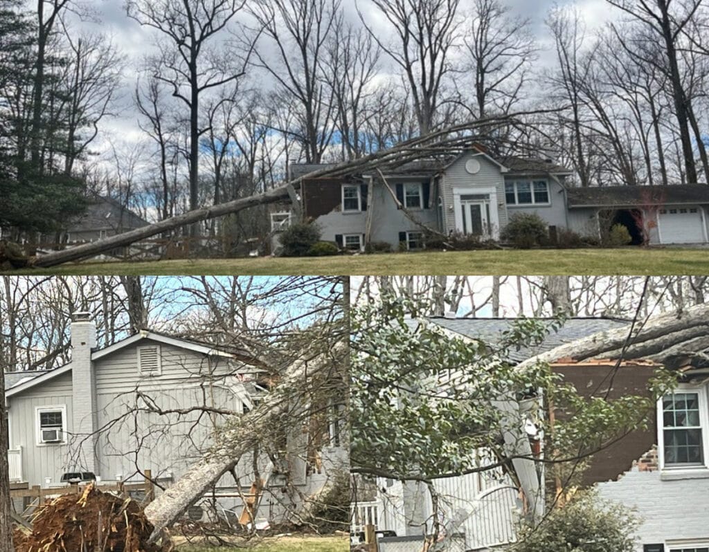 El domingo 16 de marzo, un gran árbol cayó sobre una casa en el vecindario Sycamore Acres de Rockville, causando daños materiales importantes, pero sin que se reportaran heridos.