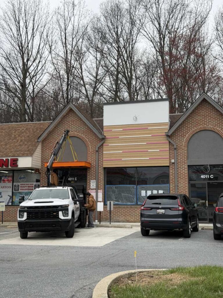 La señalización exterior y la decoración están empezando a tomar forma en el futuro local de Dunkin’ ubicado en 4011 Norbeck Road en Rockville.