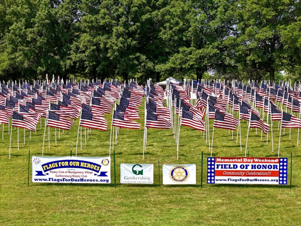 La ciudad de Gaithersburg y el Club Rotario organizarán la exhibición anual “Banderas para nuestros héroes” en Bohrer Park durante el fin de semana del Día de los Caídos, que contará con 756 banderas estadounidenses en honor a los miembros de las fuerzas armadas y otras personas reconocidas por los patrocinadores.