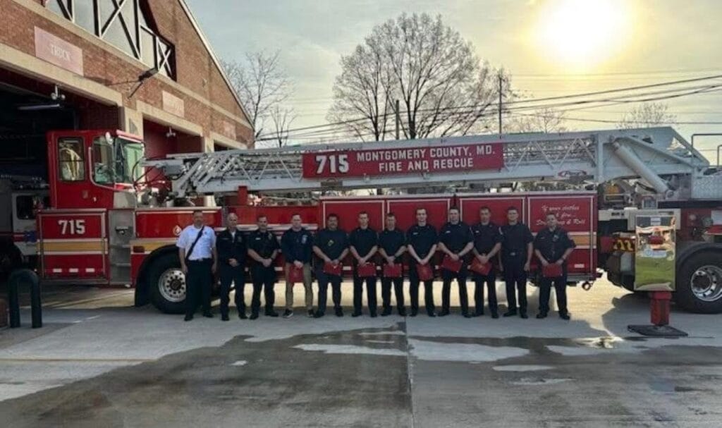 Miembros del turno A del Servicio de Bomberos y Rescate Montgomery County de las estaciones Burtonsville y Hillandale han sido reconocidos con una Mención de Unidad del Jefe de Bomberos por sus acciones para salvar vidas durante un incendio en un apartamento el 1 de enero de 2026 en el condado de Prince George.