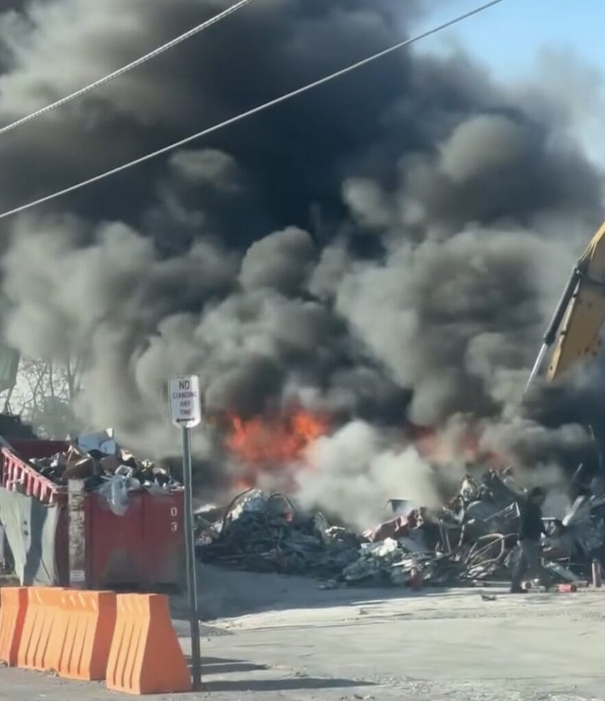 Los bomberos del Servicio de Bomberos y Rescate respondieron el martes por la mañana a un gran incendio en una pila de chatarra en Boxwell Metals, ubicado en 801 East Gude Drive, cerca de Dover Road. Llegaron al lugar y comenzaron a trabajar para controlar el fuego.