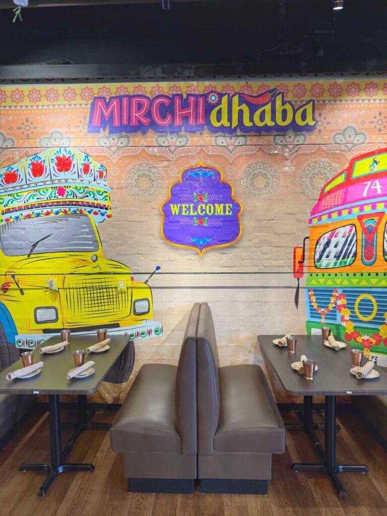 El restaurante es propiedad de Neel Kamal, de Spice Holdings LLC, quien también es dueño de Royal Tandoor, y ofrece un menú de cocina del norte y del sur de la India, incluyendo un bufé de almuerzo que comenzó la semana pasada. Mirchi Dhaba también cuenta con una barra completa, que ofrece una variedad de cócteles, cervezas y vinos para acompañar sus platos.