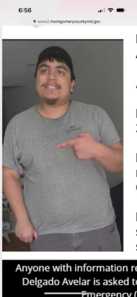 Cualquier persona que tenga información sobre el paradero de Edwin Alfonso Delgado Avelar debe llamar a la línea de no emergencia de la policía Montgomery County (301) 279-8000 (línea disponible las 24 horas).