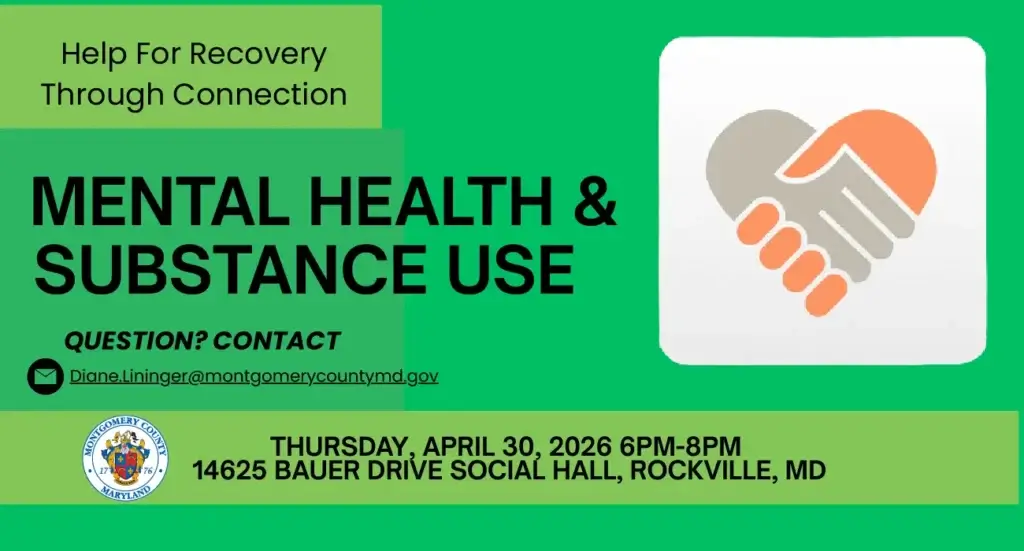 El Departamento de Salud y Servicios Humanos de Montgomery County organizará un foro de primavera gratuito titulado “Ayuda para la recuperación a través de la conexión” de 6 pm a 8 pm el jueves 30 de abril en el Centro Recreativo Bauer Drive en Rockville.